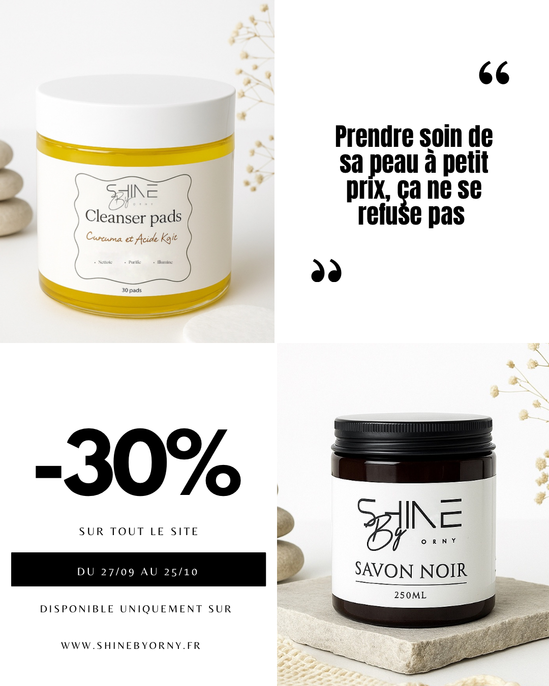 Après une épilation du visage, l'esthéticienne m'a passé une crème qui m'a picoté le visage mais qui sutout, m'a brûlé au niveau du cou et des clavicules, comme réaction allergique. Je me suis retrouvée avec des plaques noires sur mon teint clair. J'ai passé le savon noir de Shine by Orny, tout est parti. J'ai retrouvé mon teint et mon visage shine. 😊
